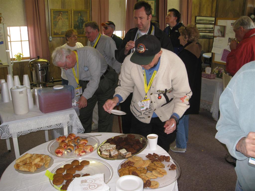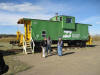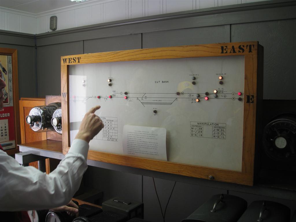Bob Kelly's tour of GN Montana Depots #1 - up at the crack of dawn; #2 - a busload of Depot lovers; #3 - John Tracy gives us a rundown; #4 - Bus captain Mark Meyer. #5 - Glacier Park Depot in early morning light; #6 - Camp Disappointment Monument (Lewis & Clark). First stop: Cut Bank, MT depot. #1 - Close up of the boys; #2 - Cut Bank depot; #3 - original and rusty GN sign; #4 - Train hype!; #5 - Right on cue, BNSF sends us an auto train. Second stop: Cut Bank, MT historical museum. #1 - Ben Ringnalda checks out the facilities; #2 - Climbing into an old building; #3 - inside boonie building; #4 - curator tells us about building's history; #5 - On a tour of a model homestead; #6 - Inside homestead cabin; #7 - you can see how small it was - cabin for one! #8, #9, #10 - Mark Meyer explains original Cut Bank GN interlocking equipment his father used to operate. #11 - checking out a BN caboose. #12, #13, #14 - BNSF had a nice little display of modern MOW equipment for our group. Thank you, BNSF! Third stop: Kevin, MT depot. #1 - Kevin station sign along ex-GN Shelby-Sweet Grass line; #2 - Kevin depot, now a senior center; #3 - Free cookies!!!; #4 - Ex-BN caboose masquerading as a GN; #5 - close up of caboose. Fourth stop: Shelby, MT museum. #1 - Unloading the buses; #2 - Standing in the chow line; #3 - lunch time; #4 - fill 'er up. #5 - White-lined BN caboose; #6 - checking out an old tank car. Fifth stop: Shelby depot #1 - Depot board; #2 - east end of depot; #3 - inside Shelby depot; #4 - These guys are SERIOUS about safety... Sixth stop: Conrad, MT depot and museum #1 - Conrad depot sign; #2 - Conrad depot in the rustic style; #3 - Old General Foods logo on elevator; #4 - Watering hole across from the depot (I love the LTD!); #5 & #6 - Inside the Conrad museum a couple blocks from the depot. #1 - lots of trains at Shelby viewed from the bus; #2 - Cut Bank's famous talking penguin. Seventh stop: Checking out the Cut Bank trestle. #1 & #2 - trestle looks good, but no trains today. Eighth stop: Browning, MT depot. #1 - Browning depot sign; #2 - depot looking east; #3 - depot looking west. |