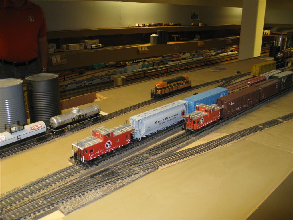 Morning Presentations: #1 - John Tracy introduces Greer Neilsen and "GN and Glacier Park Train Service"; #2 - Bruce Goeser and "Essex, Montana, the GN and Izaak Walton Inn". Izaak Walton Inn Tour: #1 - Just arrived at Essex; #2 - Waiting for chow; #3 - Tyrone Johnsen; #4 - Not ready for us yet... #5 - We must do lunch together...; #6 - A little lemon for the iced tea... A tour of GN 441 F45 luxury room at the Izaak Walton Inn: #1 - Power stand of the F45; #2 - Tom Lambrecht, 441's owner, talks to Bruce Barsness; #3 - A view out the windshield; #4 - interior of the kitchen, just behind the cab. #5 - Washing up in style; #6 - Interior of bedroom -- with exhaust fans reused as skylights!; #7 - Another view of the master bedroom; #8 - GN 441, resplendent in Big Sky Blue; #9 - Henry Ewert poses on the front steps of 441. Thank you, Tom, for the tour of your locomotive! Whitefish Model Railroad Tour: #1 - Swapping buses on the outskirts of Whitefish; #2 - Whitefish Depot; #3 - Bruce Barsness and Bob Ulberg watch a grain train roll west; #4 - Rolling past the GN NW-3 #181. First layout - #1 - There's a bit of a hike involved...; #2 - GNRHS Members tackle the 2.2% grade with ease...; #3 - Whitefish depot and yard; #4 - The scenery is starting to take shape; #5 - Putting some Geeps in the spotlight... Second layout - #1 - It's over there!; #2 - Slight mishap with the North Coast...; #3 - A wye full of cab units; #4 - Lowell Hanson digitizes a scene; #5 - Trains line up at Saint Paul depot. Third layout - #1 - Don McGlothin and his engine terminal; #2 - Switching the Hawaiian Punch spur; #3 - Layers of Great Northern goodness; #4 - Spotless workbench; #5 - Don and a nice overview of his yard; #6 - Hold it... Turkey Dinner at the Whitefish Moose Lodge: #1 - Bruce and Lowell talk it over; #2 - Lining up for the vittles; #3 - Mmmm...that looks good... |
