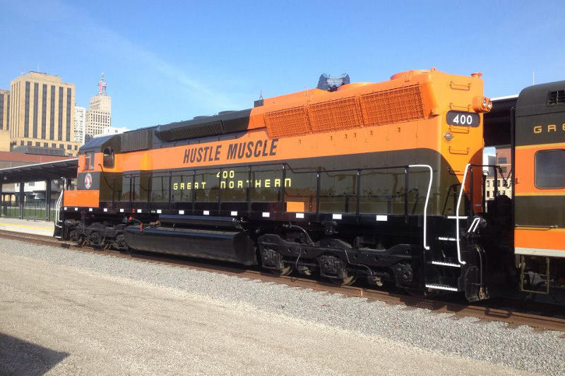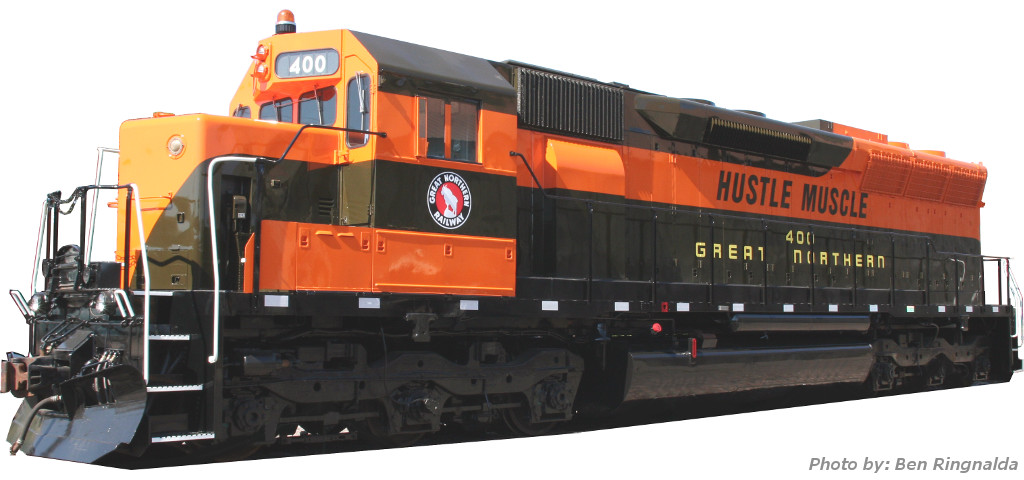 GNRHS owns Great Northern SD45 #400 'Hustle Muscle' and keeps it in operating condition. 'Hustle Muscle' sees occasional use at conventions and special events. Below is a showcase of 'Hustle Muscle's past appearances.