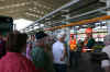 Photos from left to right: Wednesday morning and afternoon tour: #1 is Marv Franz giving a talk at Hillyard; #2 is GN caboose X-176; #3 is interior of X-176; #4 is a terminal map of the Hauser, ID fueling station. #1 is interior of fuel unloading dock; #2 is BNSF personnel explaining unloading process; #3 is maze of pipes; #4 is model/cross section of how fueling station is built. #1 is fueling spot; #2 is how fuel line swivels; #3 is overall view of fueling dock; #4 is close up of sanding spot. #1 are the two huge fuel tanks at Hauser; #2 is the Longhorn barbecue under a tent at the Spokane fairgrounds; #3 is a very appropriate license plate at the Ridpath!